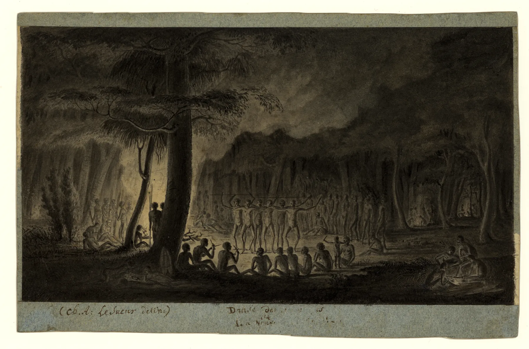 « Quant aux naturels qui habitent cette partie de la Nouvelle-Hollande, nous ne pouvons en offrir à nos lecteurs des détails bien circonstanciés n’ayant pas beaucoup communiqué avec les habitans. Néanmoins pendant le peu de tems que nous y avons séjourné, nous avons acquis la conviction qu’ils ne sont ni méchans ni à craindre »