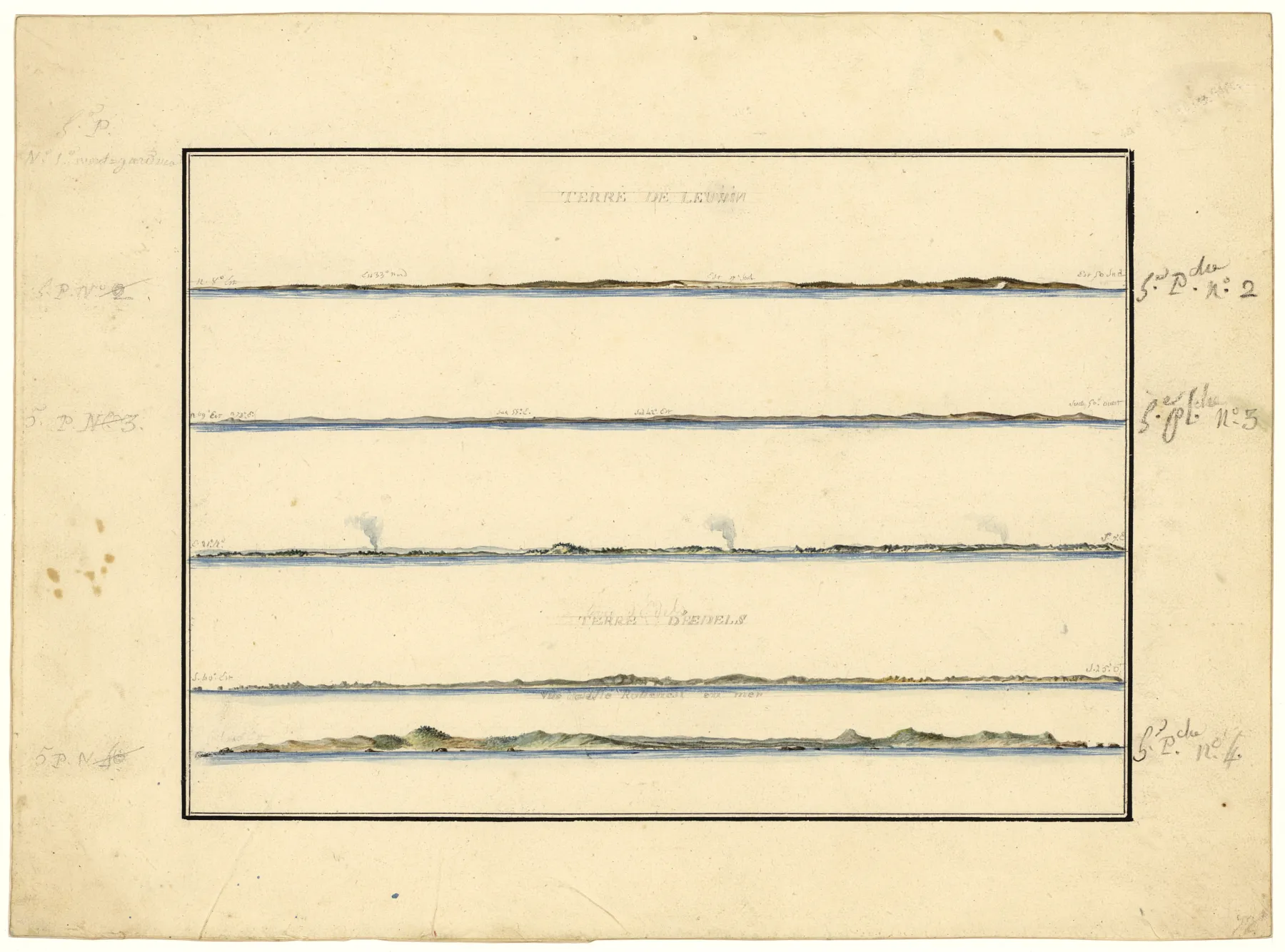 Pierre-Bernard Milius, Lieutenant de vaisseau sur le Naturaliste, Journal de voyage, p. 10. Transcription P. Hauguel avec l’autorisation de Monsieur Shand Kidd.