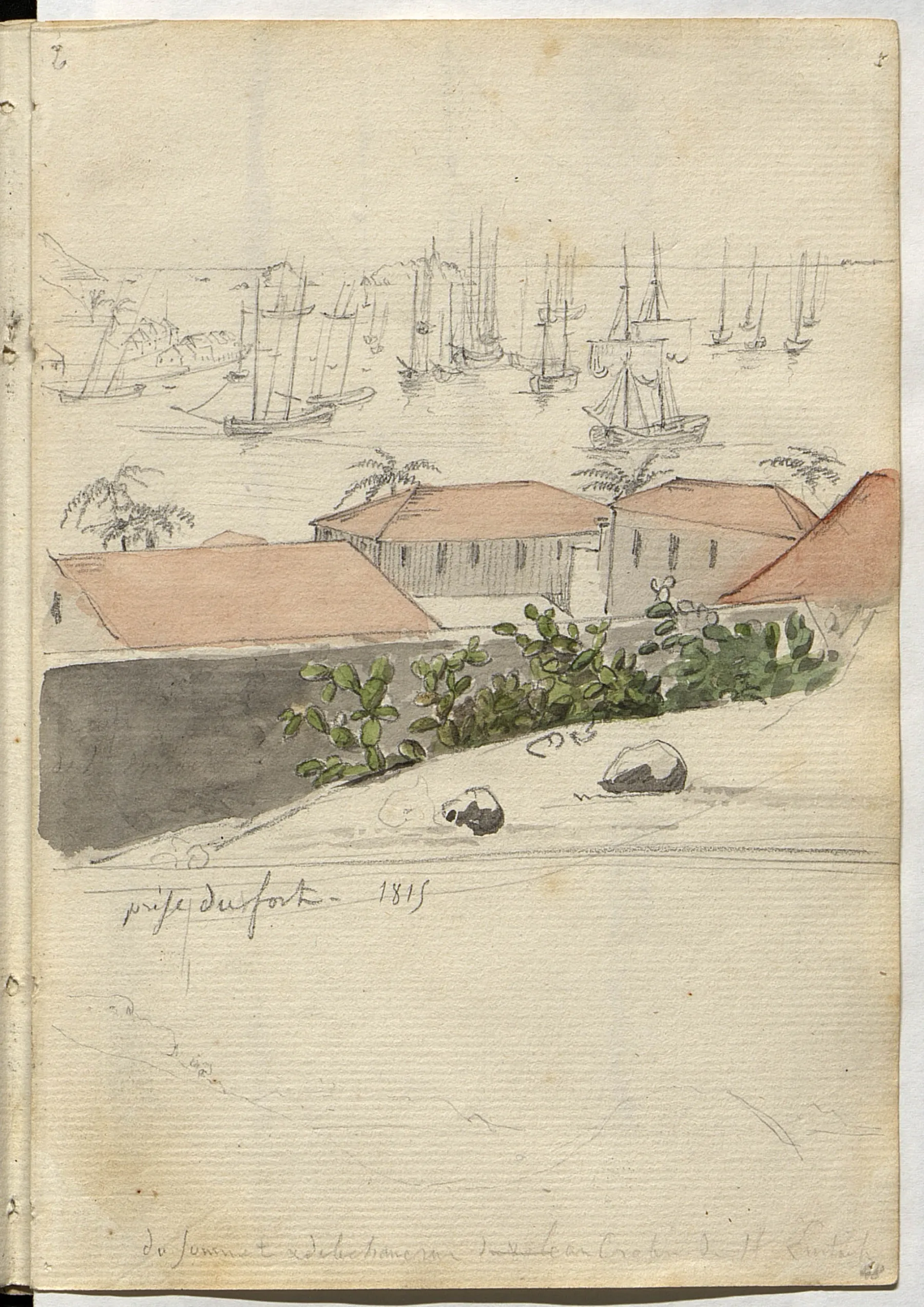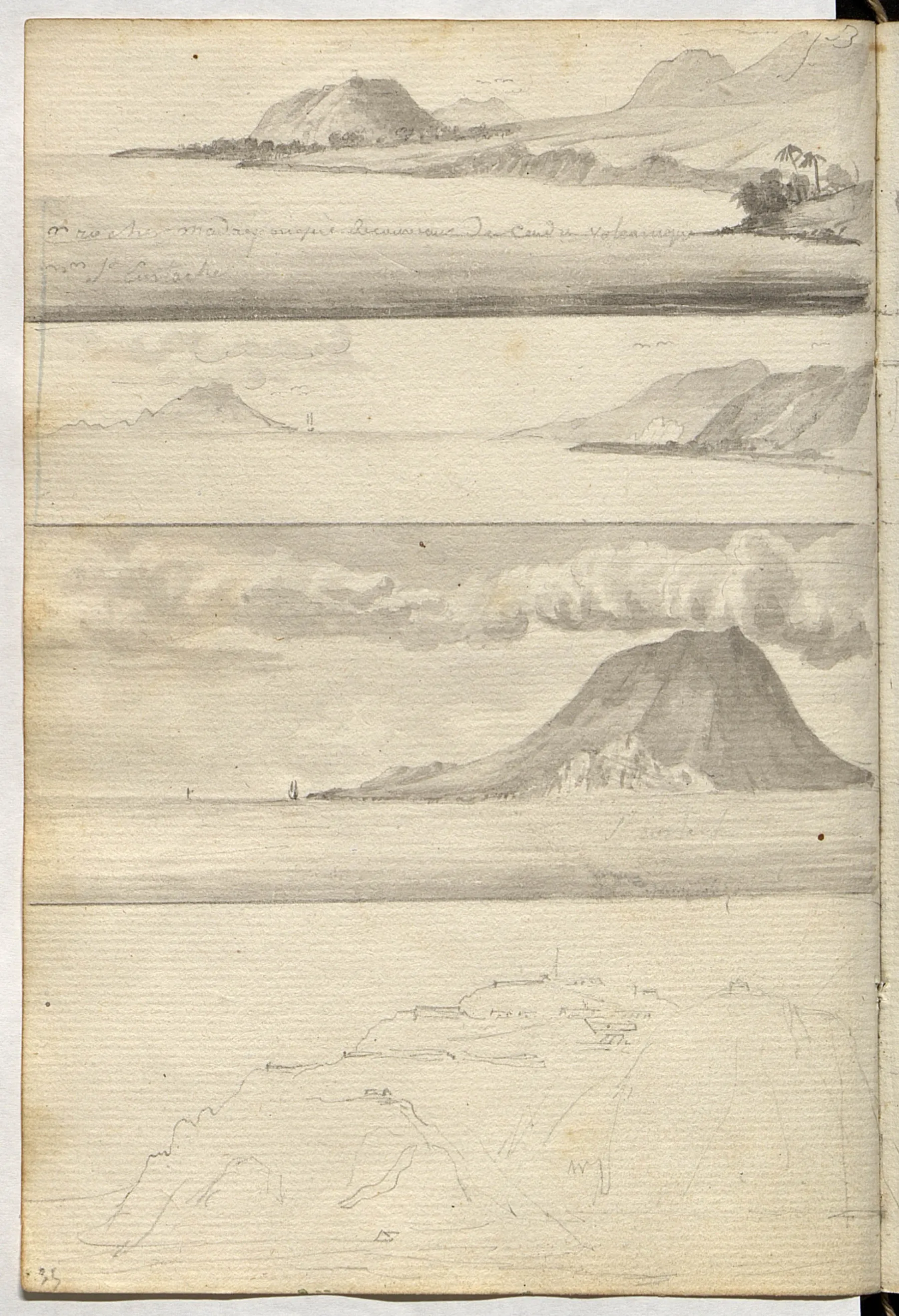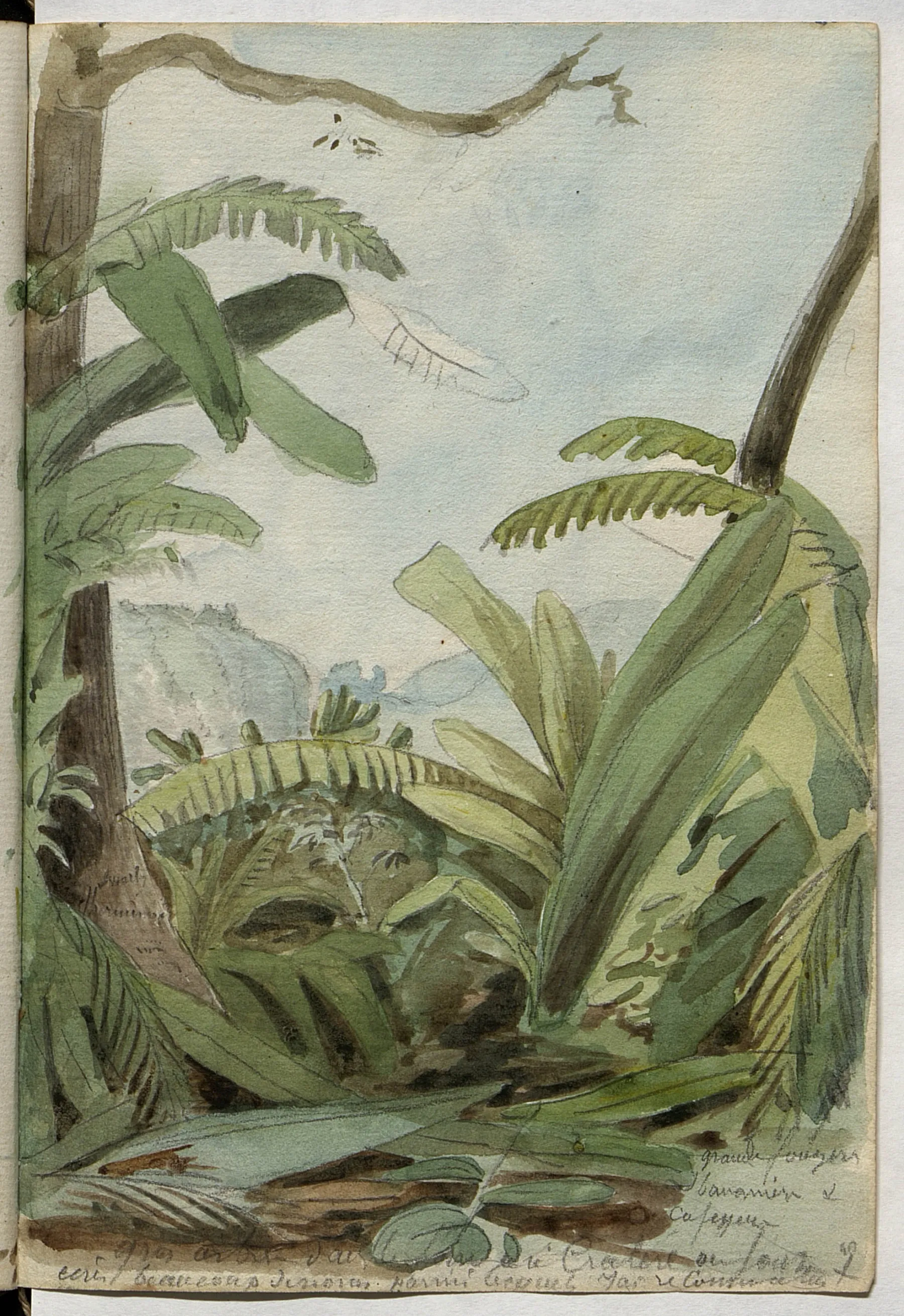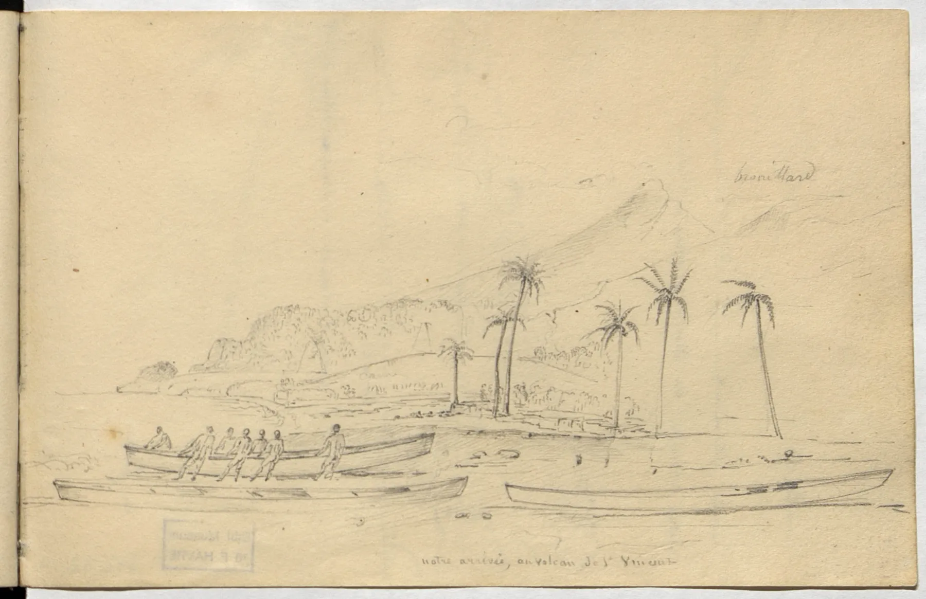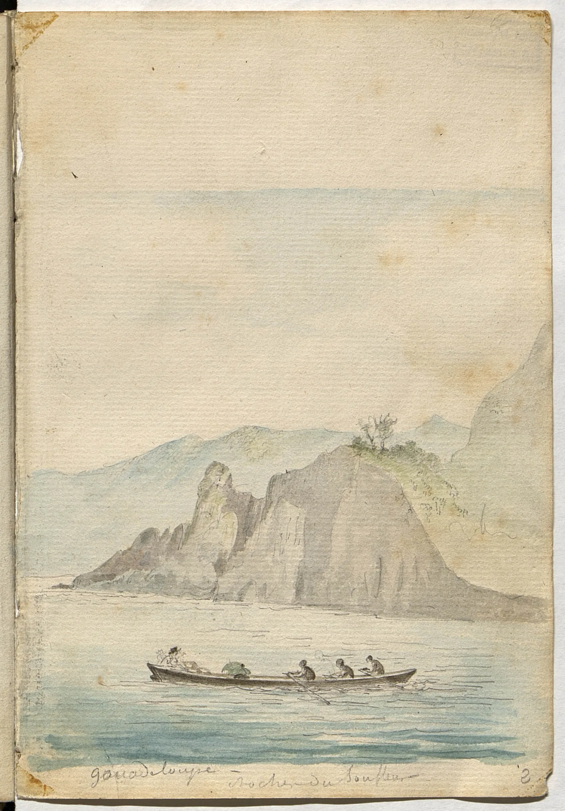 Lorsque Lesueur et Maclure font escale aux Antilles fin décembre 1815, Lesueur dessine des plantations : on y reconnaît des esclaves noirs. Les bords de mer constituent un lieu intense de collecte d’animaux marins et l’intérieur des terres dévoile des roches volcaniques et basaltiques.