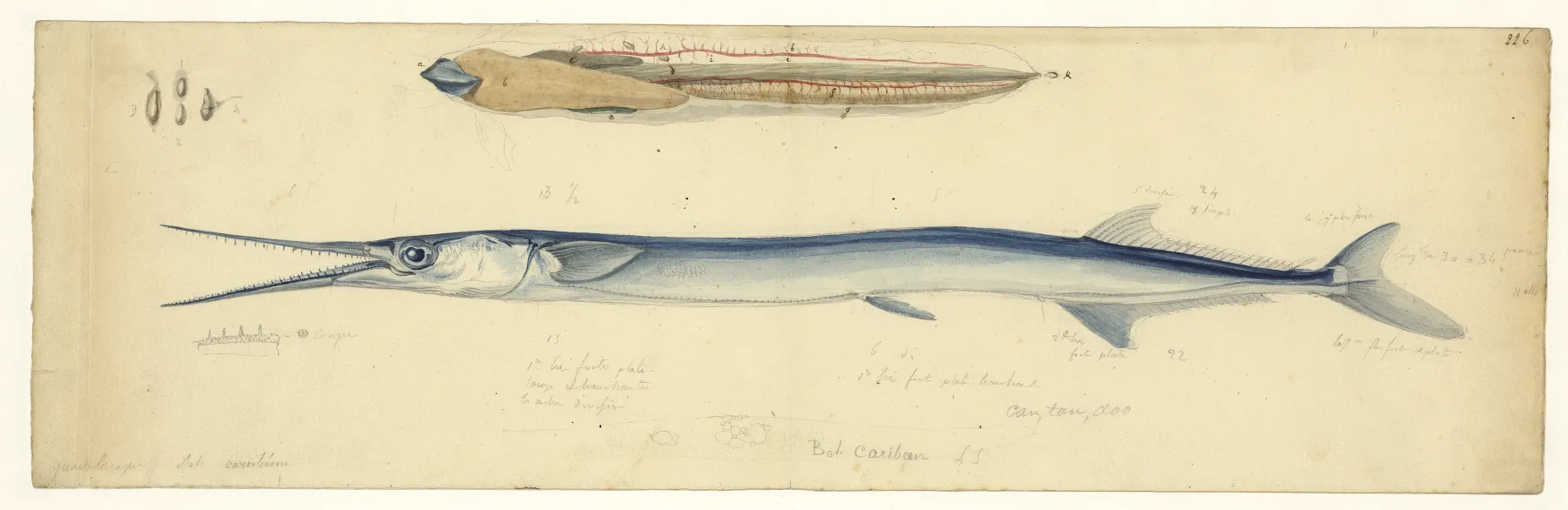 Le 19ème siècle voit cependant la suppression progressive de l’esclavage par les pays colonisateurs : Angleterre, Suède, Pays-Bas, France, Espagne. 1873 marque la fin de l’esclavage aux Antilles, après plus de trois siècles et demi de pratique. Lorsque Lesueur et Maclure font escale aux Antilles fin décembre 1815, Lesueur dessine des plantations : on y reconnaît des esclaves noirs. Les bords de mer constituent un lieu intense de collecte d’animaux marins et l’intérieur des terres dévoile des roches volcaniques et basaltiques. Le départ pour les Etats-Unis a lieu le 23 avril 1816. Les eaux du golfe du Mexique offrent encore nombre d’espèces marines.