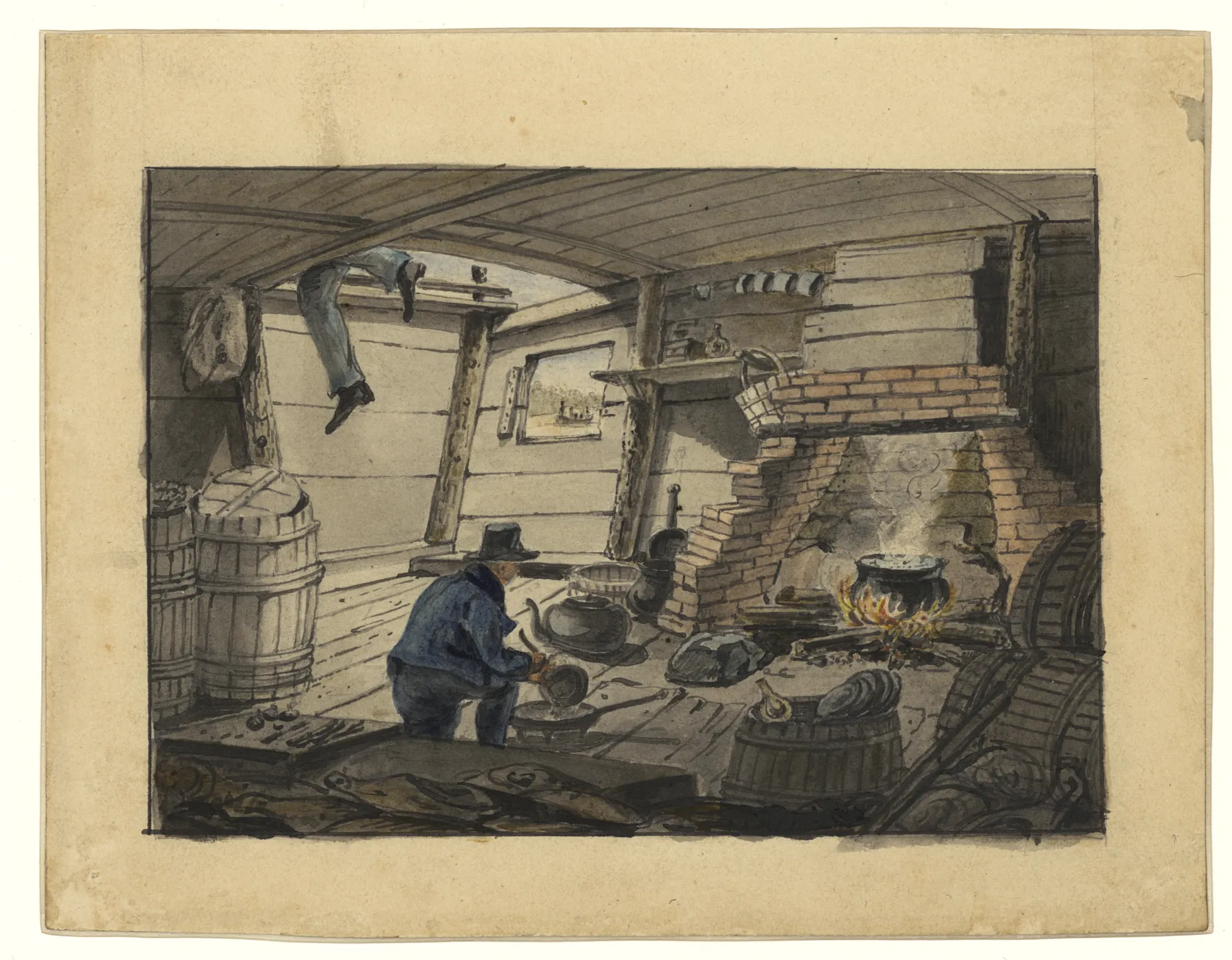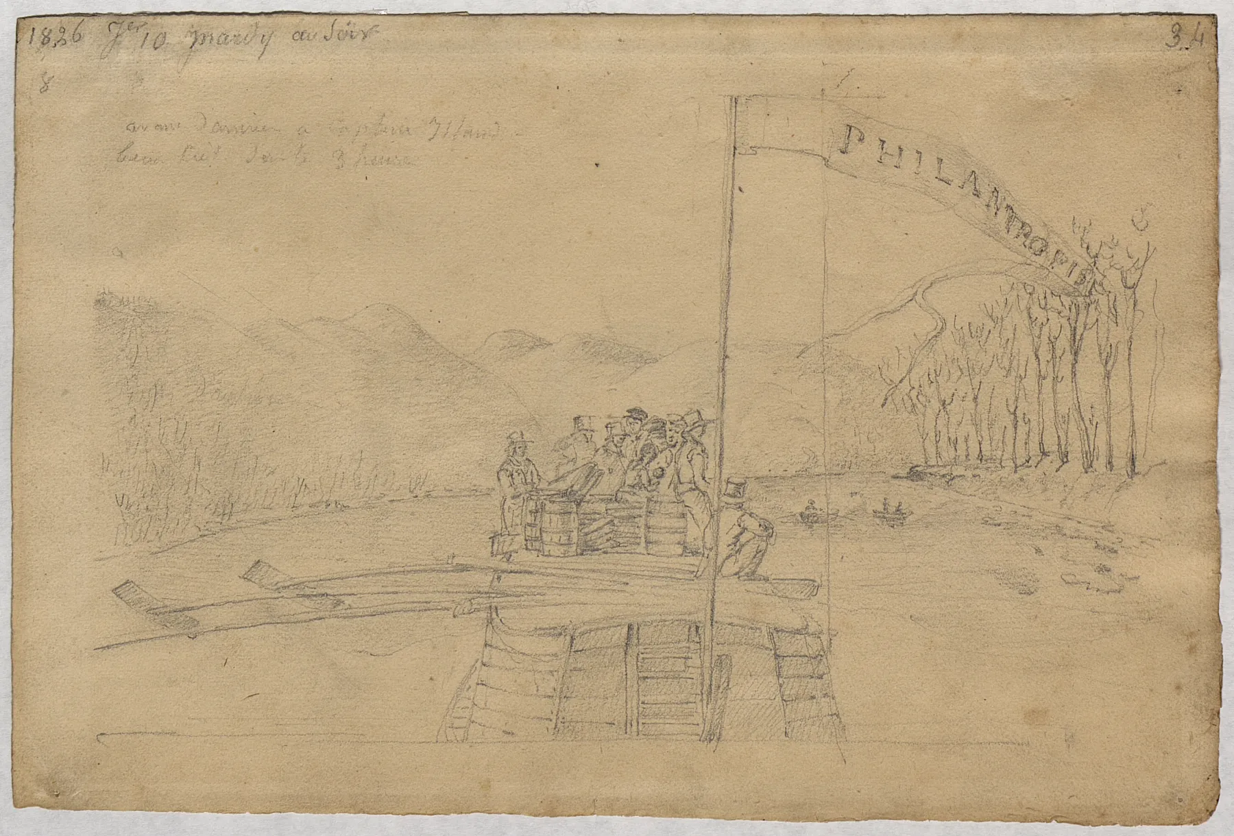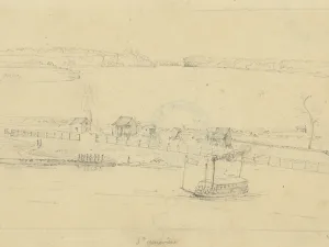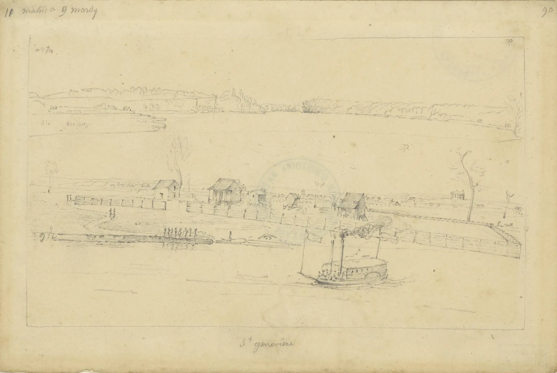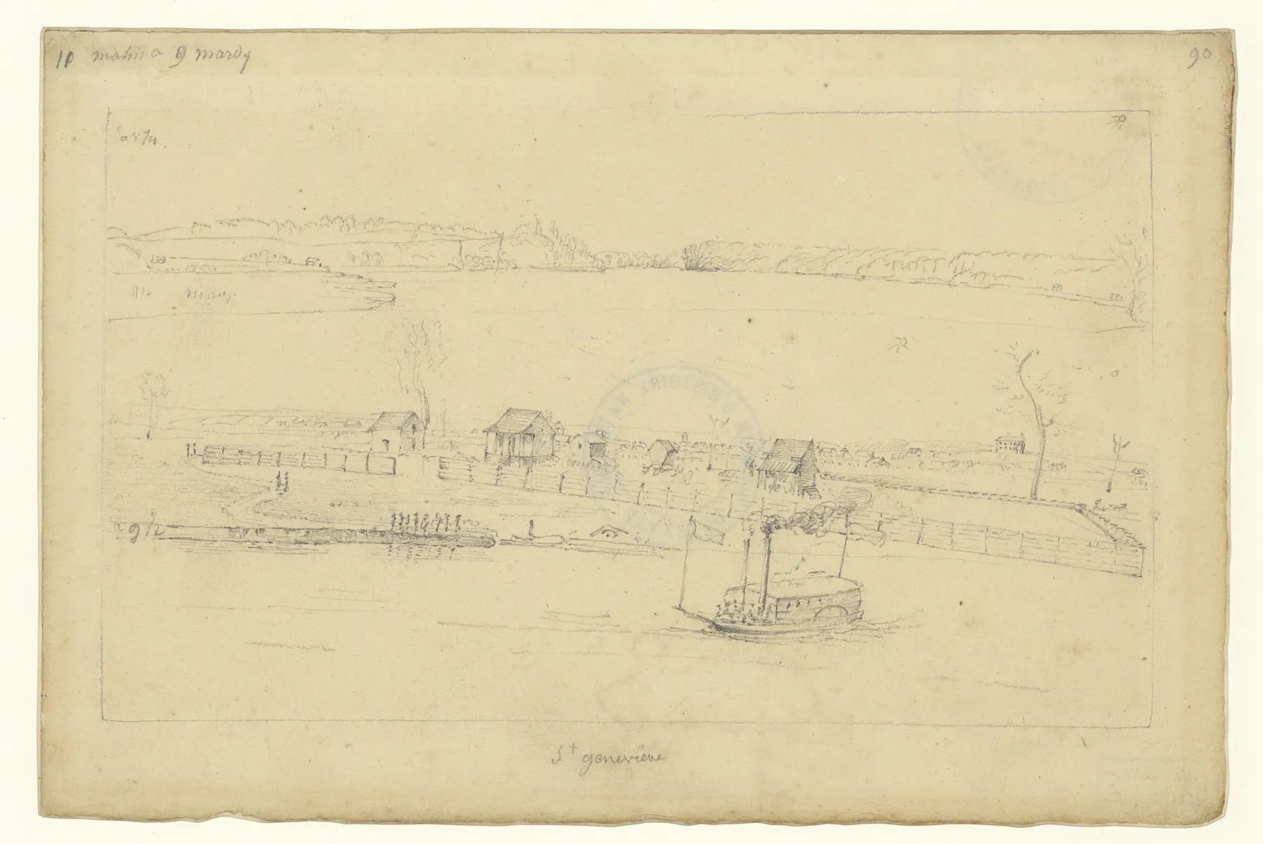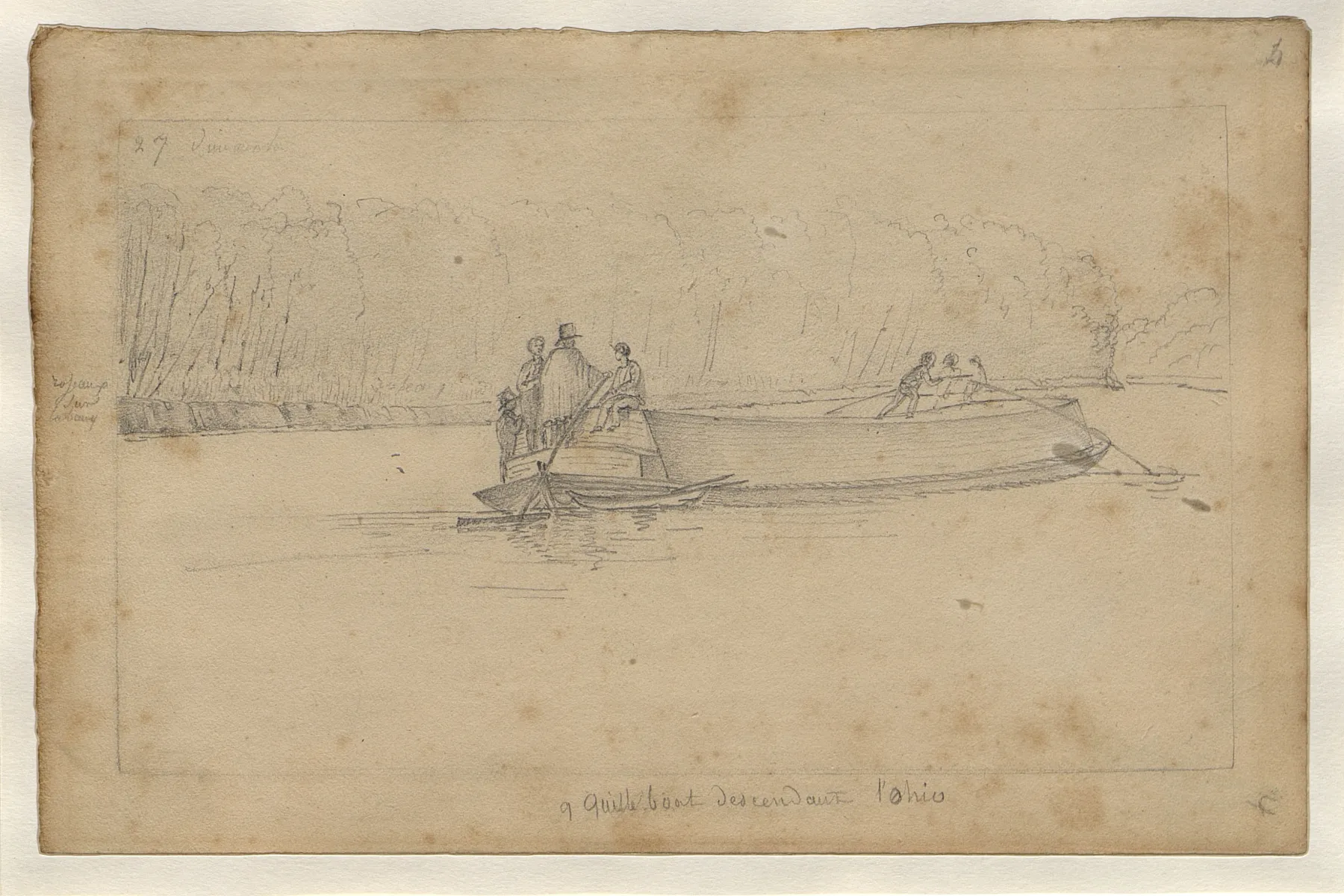Dès son arrivée aux Etats-Unis en 1816, Lesueur s’intéresse à ce sujet à la demande de son père, Jean-Baptiste Denis Lesueur. Armateur du Havre, celui-ci souhaite implanter sur la Seine une compagnie de bateaux à vapeur. Son fils décrit donc précisément dans les courriers qu’il adresse à son père les différents types de bateaux à vapeur qu’il voit évoluer sur les fleuves en distinguant leurs usages : descendre, remonter ou traverser les fleuves, transporter des hommes, des animaux ou des marchandises.