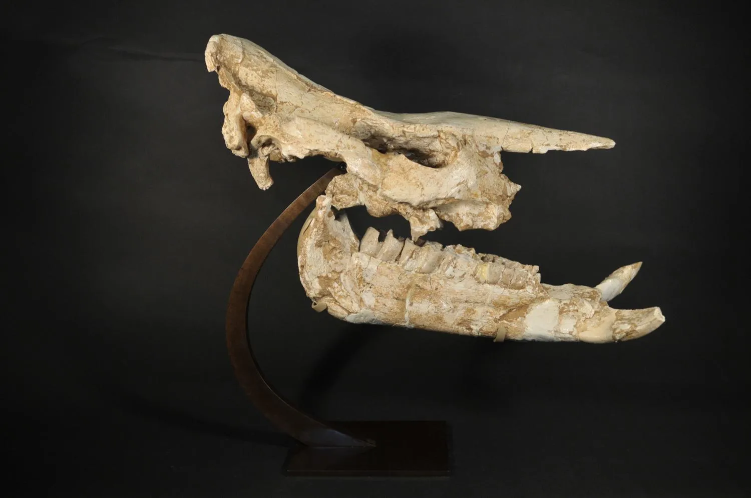 Le Muséum d’histoire naturelle du Havre reçut dans les années 90, sous forme de dévolution de douane, un gros crâne fossile. Encore contenu dans sa gangue (roche autour du fossile), il fut dégagé et préparé au Muséum.
