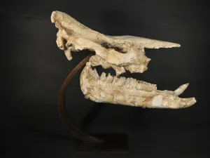 Le crâne qui est complet appartient à un genre de rhinocérotidé disparu de la famille des Aceratheriinae appelée Chilotherium (du grec, Chilo = lèvre et ther- = bête sauvage).