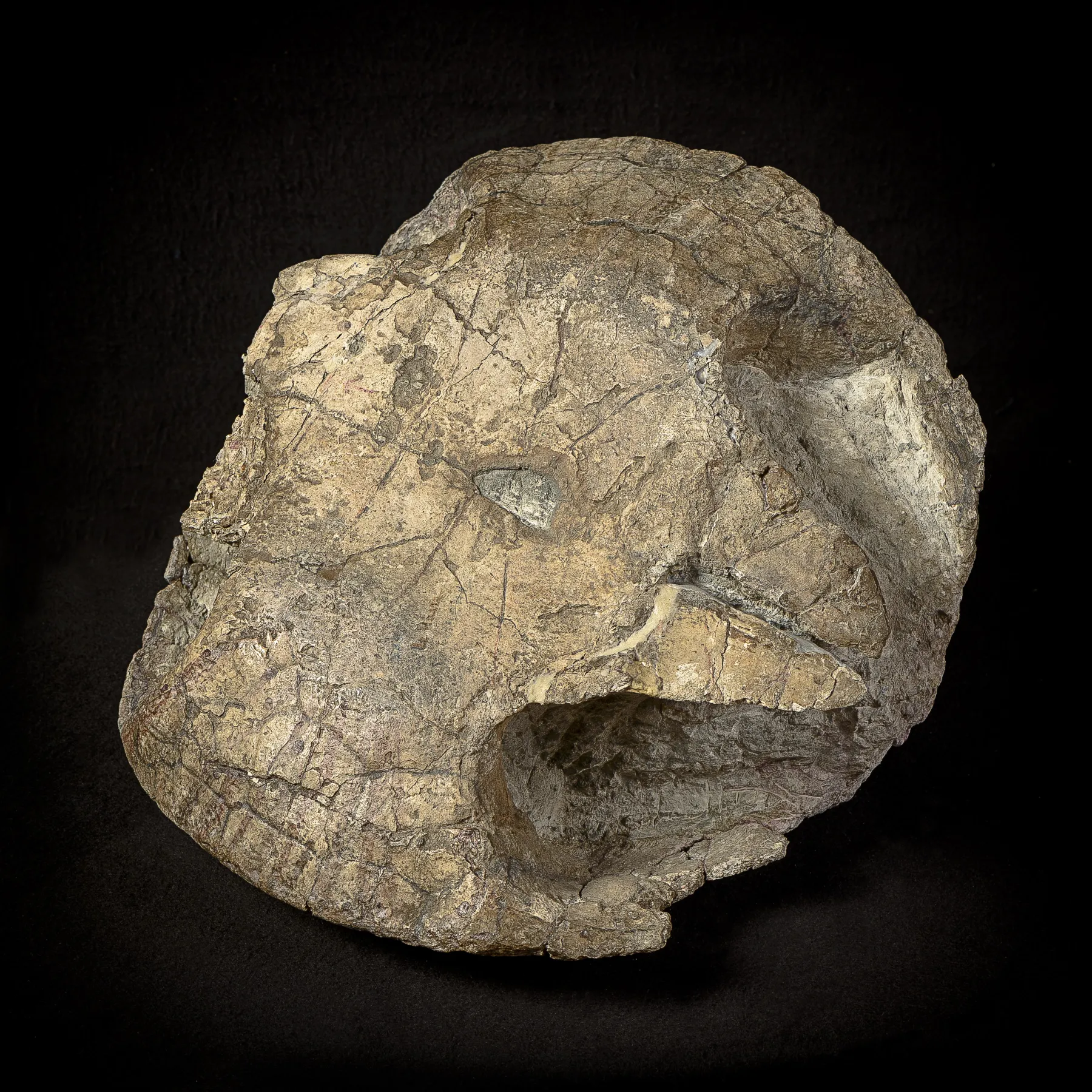 Cette carapace date d'environ -155 millions d'années et provient du Cap de la Hève, près du Havre. Les carapaces complètes comme celle-ci sont extrêmement rares. La carapace des tortues est constituée de côtes qui, au cours de l'évolution, se sont élargies et soudées entre elles. Il est donc parfaitement impossible pour une tortue de "sortir" de sa carapace.