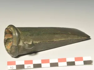 L’âge du Bronze marque l’avènement d’une métallurgie du cuivre, mais également de l’étain et du plomb. L’introduction des alliages à base de cuivre a permis le développement en nombre de pièces de fonderie de formes relativement simples (haches plates, haches à douille…).