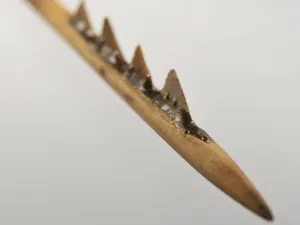 Si la flèche est un instrument de chasse, elle peut être aussi un instrument de guerre. Il existe des pointes encore incluses dans des pièces osseuses humaines.