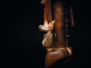 Une statue qui protège de la mort ? Selon les rites de l’ethnie Téké, cette statuette possède, entre autres, le pouvoir d’écarter du village la maladie et la mort. Seul le devin (appelé nganga) connait les formules qui donne à ces statuettes leur pouvoir magique.