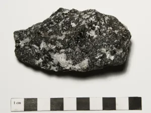 Le nom gabbro est tiré d’une localité de Toscane (Italie). Il s’agit d’une roche magmatique bleuâtre, gris moyen à gris sombre, parfois presque noire, mais aussi verdâtre à cause de minéraux chloritisés*.