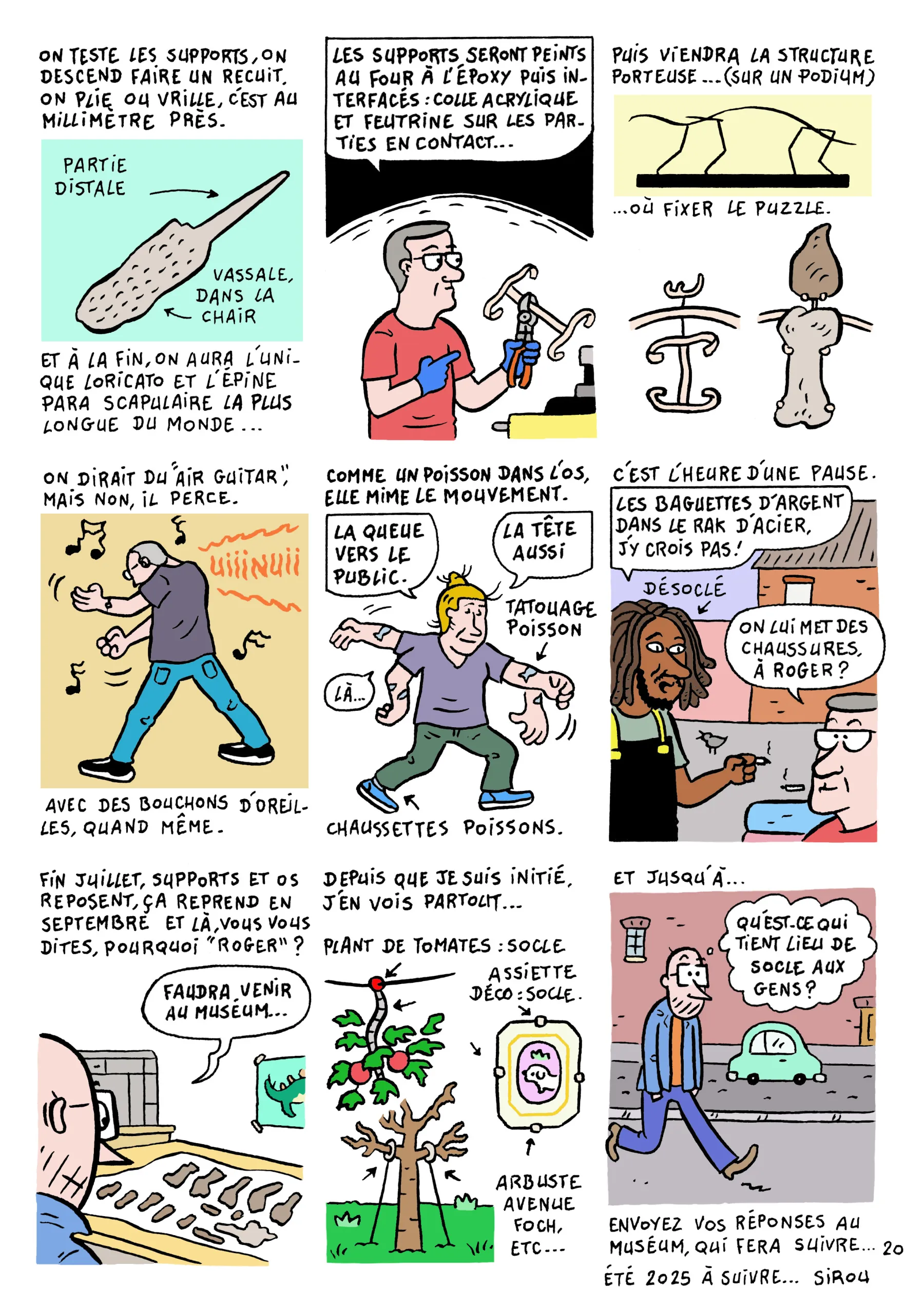 Dans ce 7ème épisode, on découvre une nouvelle fois un métier aussi discret qu’indispensable : celui de socleur ! Entre métal, mesures et minutie, notre dessinateur assiste à la création de supports sur mesure qui mettront en valeur les collections du Muséum, tout en assurant leur sécurité.