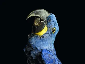 L’ara hyacinthe est le plus grand de tous les perroquets (jusqu’à 1,50 m d’envergure). Il se rencontre dans les palmeraies ou marais parsemés d’arbres en Bolivie et au Brésil. Il reste toujours en couple, même en vol, et se nourrit essentiellement de fruits et de graines. Bien que protégé, l’ara est fortement menacé par le commerce illégal.