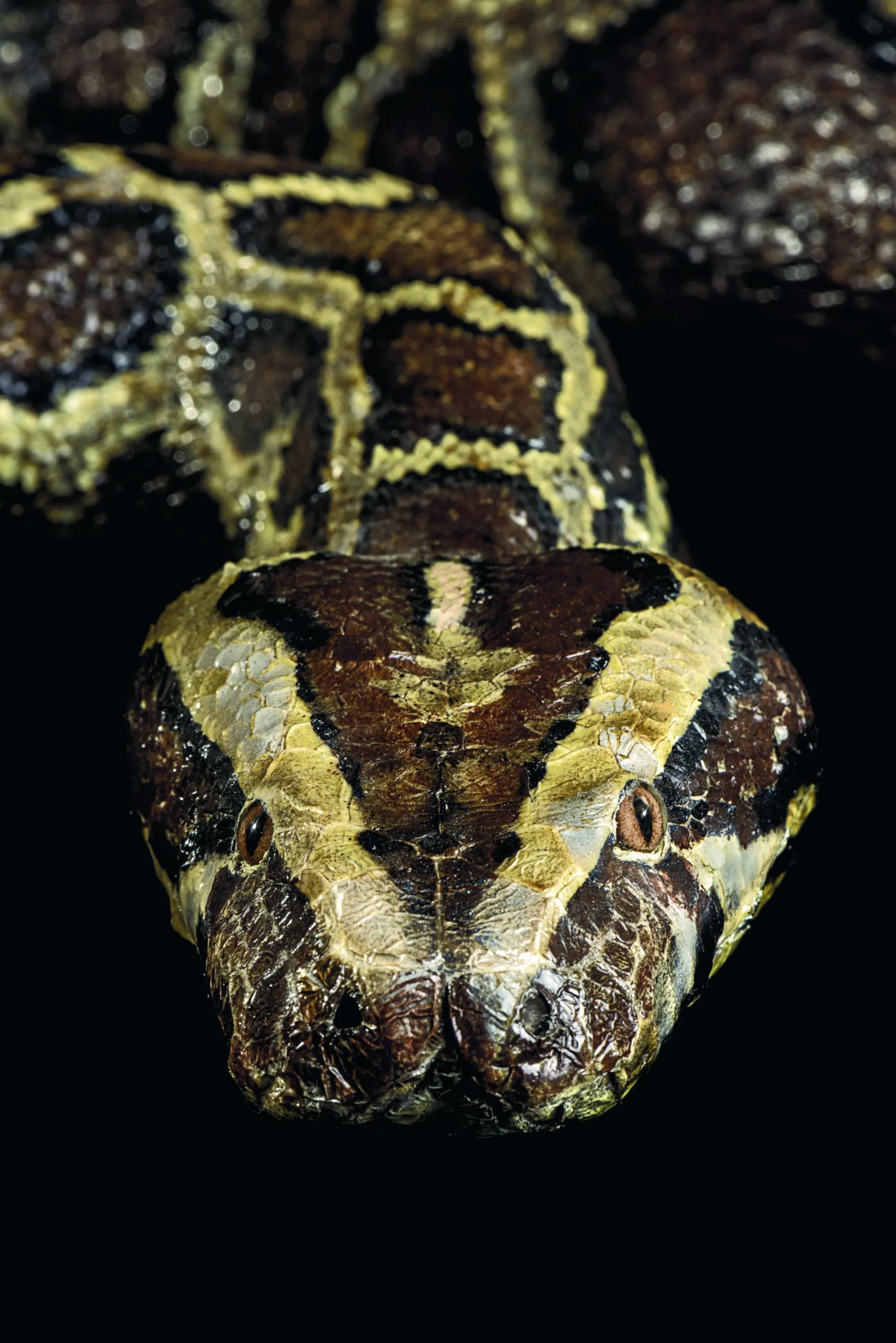 Le python moulure est un serpent constricteur : il étouffe ses proies avant de les avaler. De taille impressionnante, il peut dépasser 7 m de long pour un poids de 180 kg. Il vit notamment en Inde, Birmanie et au Vietnam. Il chasse à l’affût mammifères, oiseaux et reptiles.