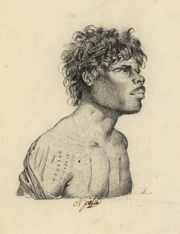 Homme d'Australie, dessin de Nicolas-Martin Petit - Pierre noire ou fusain sur papier  - Collections du Muséum d’histoire naturelle, Le Havre