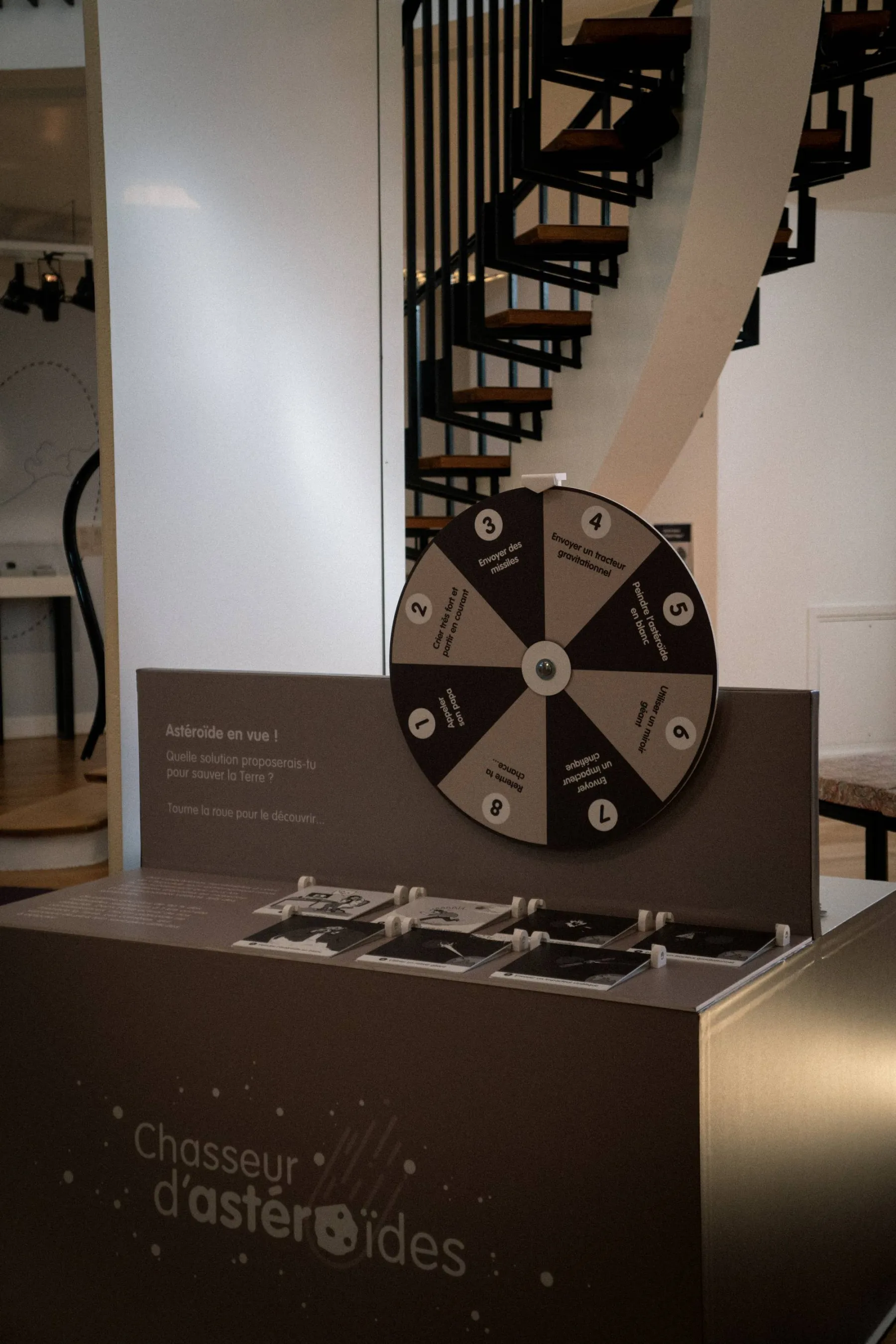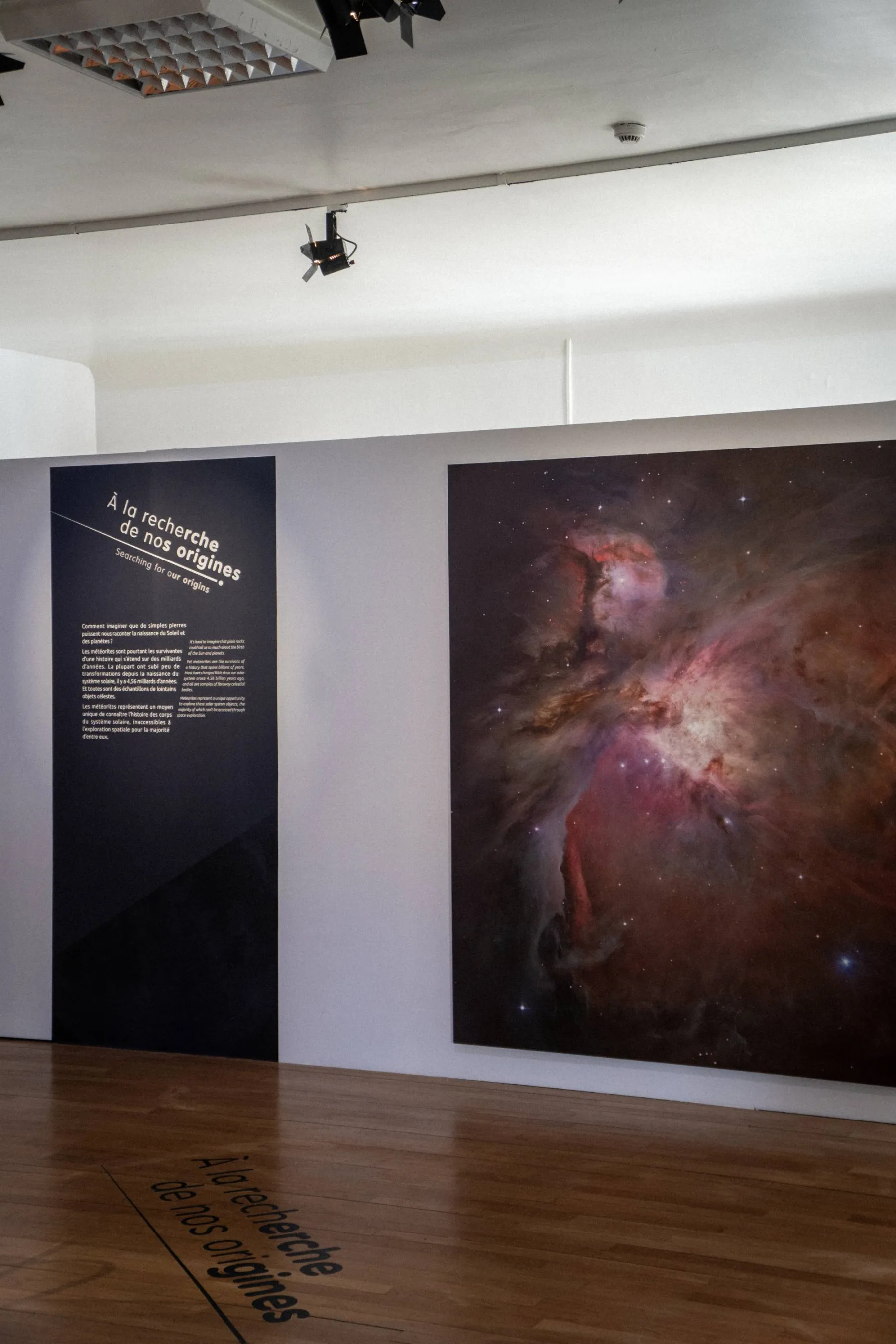 Avec une approche interactive et sensible, la scénographie propose un parcours immersif, ponctué par la présentation de vitrines de météorites, de grandes projections spectaculaires et des dispositifs innovants, dans une ambiance poétique et contemporaine.