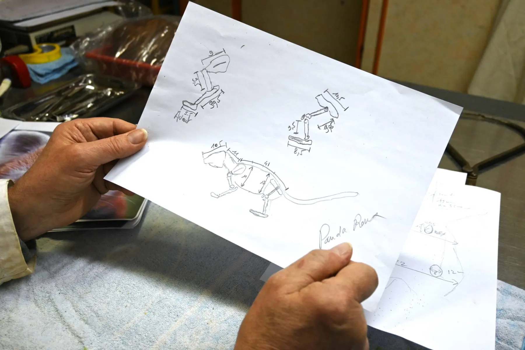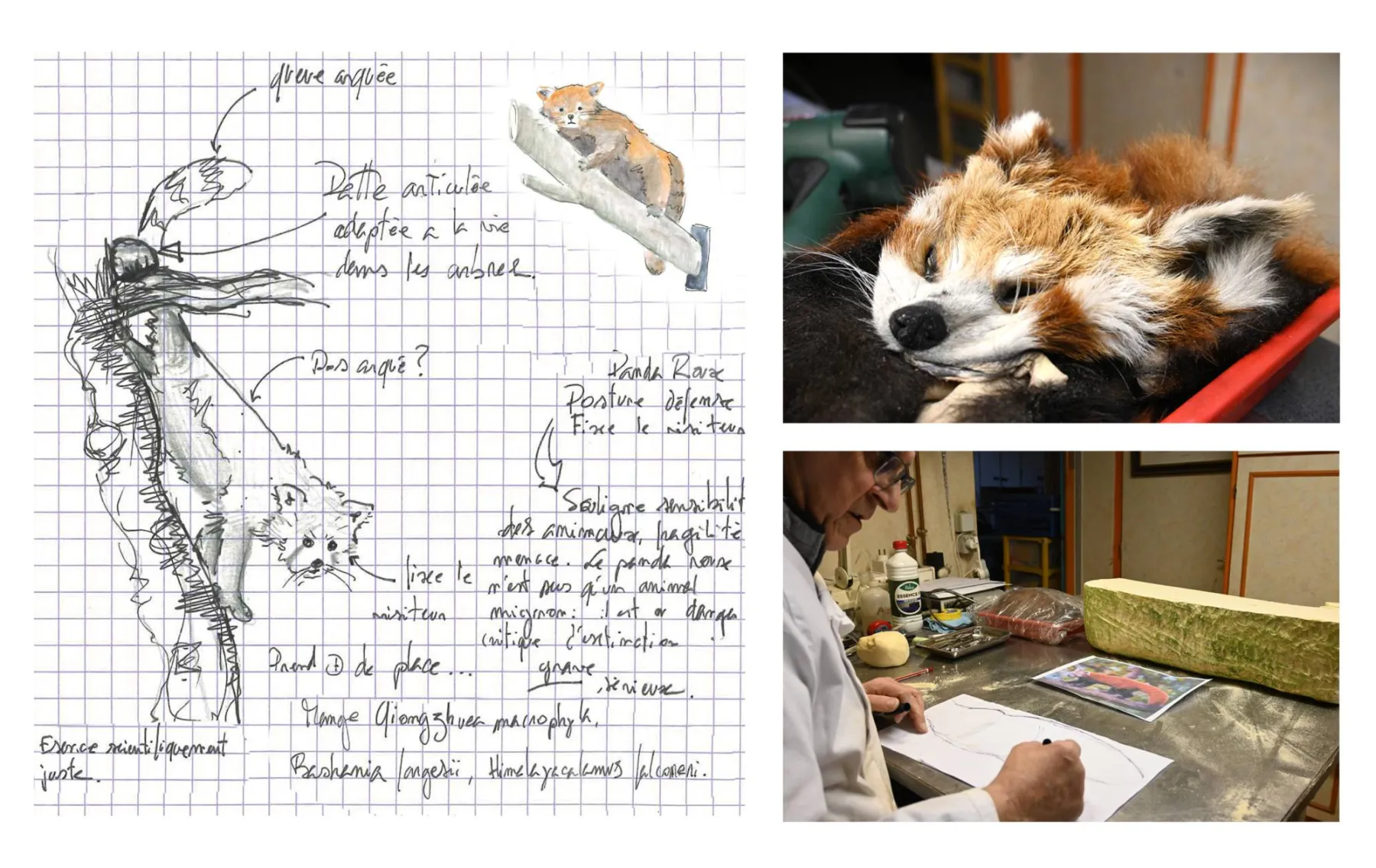 En ce moment je travaille sur un Panda roux pour le futur Muséum. Baptiste, le chargé des collections Sciences de la vie, avait fait au préalable un croquis du panda tel qu'il l'imaginait dans l'exposition.