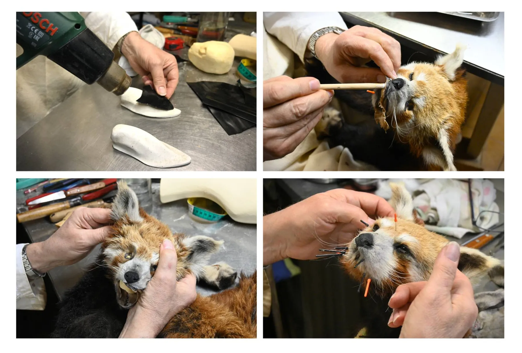 D-D : La soudure pour réaliser parfois des structures métalliques ou encore pour créer certains outils très spécifiques. Par exemple, j’ai rencontré un soudeur pour réaliser un outil me permettant de démonter une patte d’hippopotame. Chose que je n’aurais jamais pu faire avec les outils traditionnels de taxidermie. J’ai aussi demandé un jour à un ami coiffeur ses conseils et ses ciseaux sculpteurs pour coiffer les poils récalcitrants d’un chien ! (Rires) Il faut être très polyvalent, bricoleur et ingénieux !