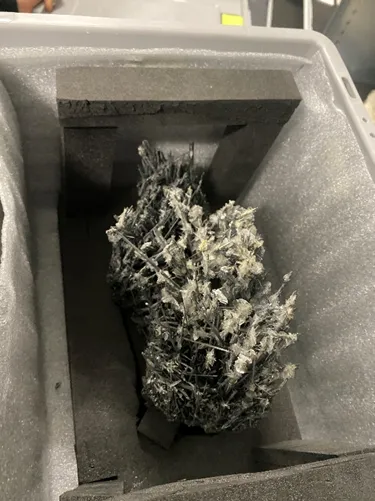 L.M. : J’ai eu l’occasion d’observer une stibine et une gypse.. C’était remarquable, surtout par le contraste. Ces grandes aiguilles métalliques sombres et tranchantes, avec de petits pétales de gypse dorés posés dessus. Ca m’a particulièrement marqué.