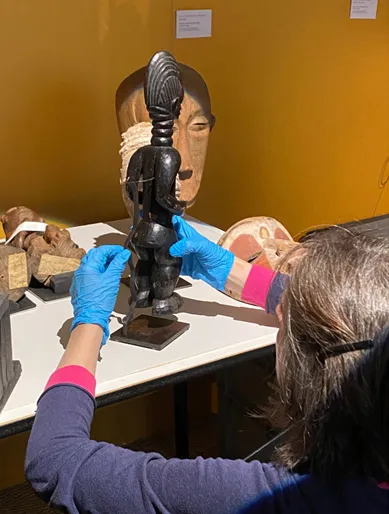 La première étape consiste à réfléchir à la scénographie de l'exposition, c'est-à-dire à la disposition et à la mise en valeur des objets exposés. L'expertise d'Anne Liénard, spécialiste de l'art africain et directrice du Muséum, ainsi que celle de Gabrielle Baglione, chargée des collections de dessins et d'ethnographie océanienne, est essentielle dans cette phase de réflexion.