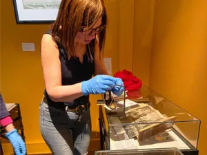 A cette étape, les objets sont préparés avant d'être exposés. Afin d’être présentés sous leur meilleur jour, les objets subissent un nettoyage minutieux, généralement à l’aide d’un pinceau. Ils sont ensuite déposés individuellement sur un socle