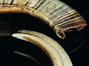 - Matériaux : dents de cochon, morceaux de coquillages, pâte végétale