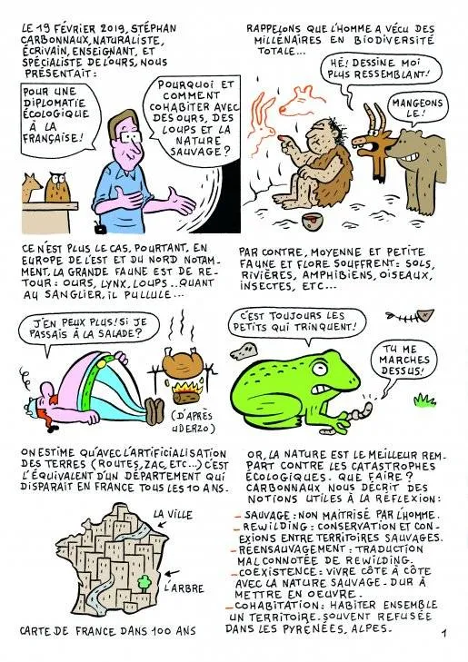 Retour sur la conférence dessinée de Stéphan Carbonnaux intitulée : "L'homme et l'ours : je t'aime moi non plus". Un thème d'actualité aux multiples enjeux pour une conférence tout à la fois passionnante et vivante.... croquée par Sirou !