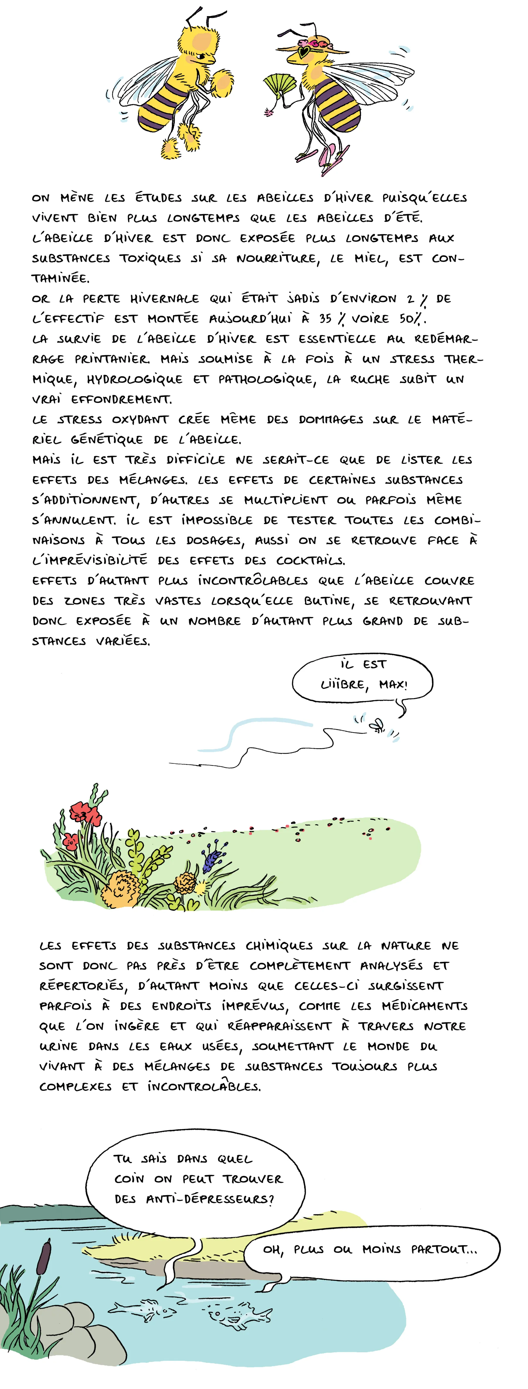 Le Muséum accueillait Luc Belzunces, chercheur en toxicologie environnementale à l'INRA. Avec lui, nous avons parlé des mélanges pesticides et de leurs effets sur les populations d'abeilles. Quel est l'état actuel des connaissances sur les pesticides ? Qu'est-ce que l'effet cocktail ? Comment mener ces recherches ? Un échange particulièrement riche sous le regard et les pinceaux de la dessinatrice Agnès Maupré, qui nous livre pour cet article un délicat résumé dessiné...